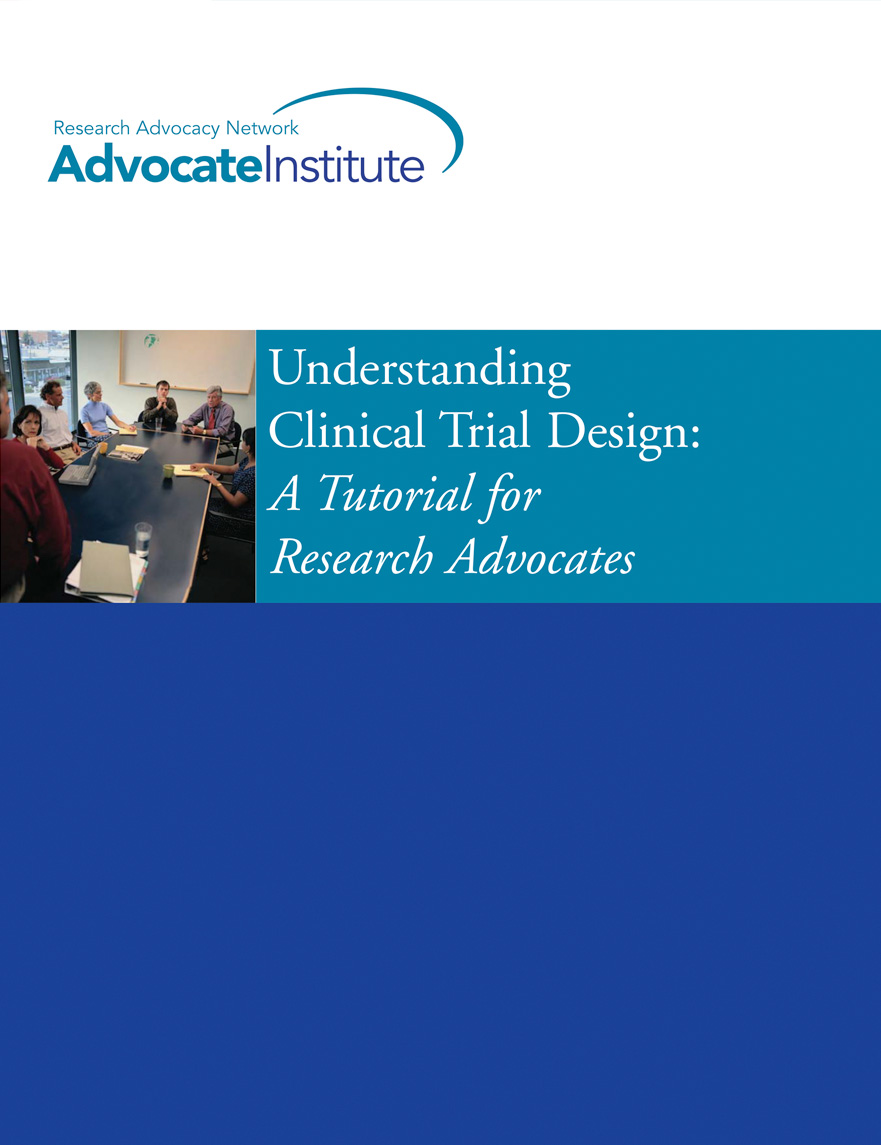 This 52 page tutorial was developed by Research Advocacy Network to assist research advocates in developing strategies and contributing to discussions about clinical trial design. Text includes an expanded glossary of terms, discussion of Bayesian statistical design. AVAILABLE ONLY IN PDF FORMAT. Authored by Jane Perlmutter, PhD and funded by the Advocacy Core of Indiana University Breast Cancer Center of Excellence for Individualization of Therapy (George Sledge, MD, Principal Investigator).